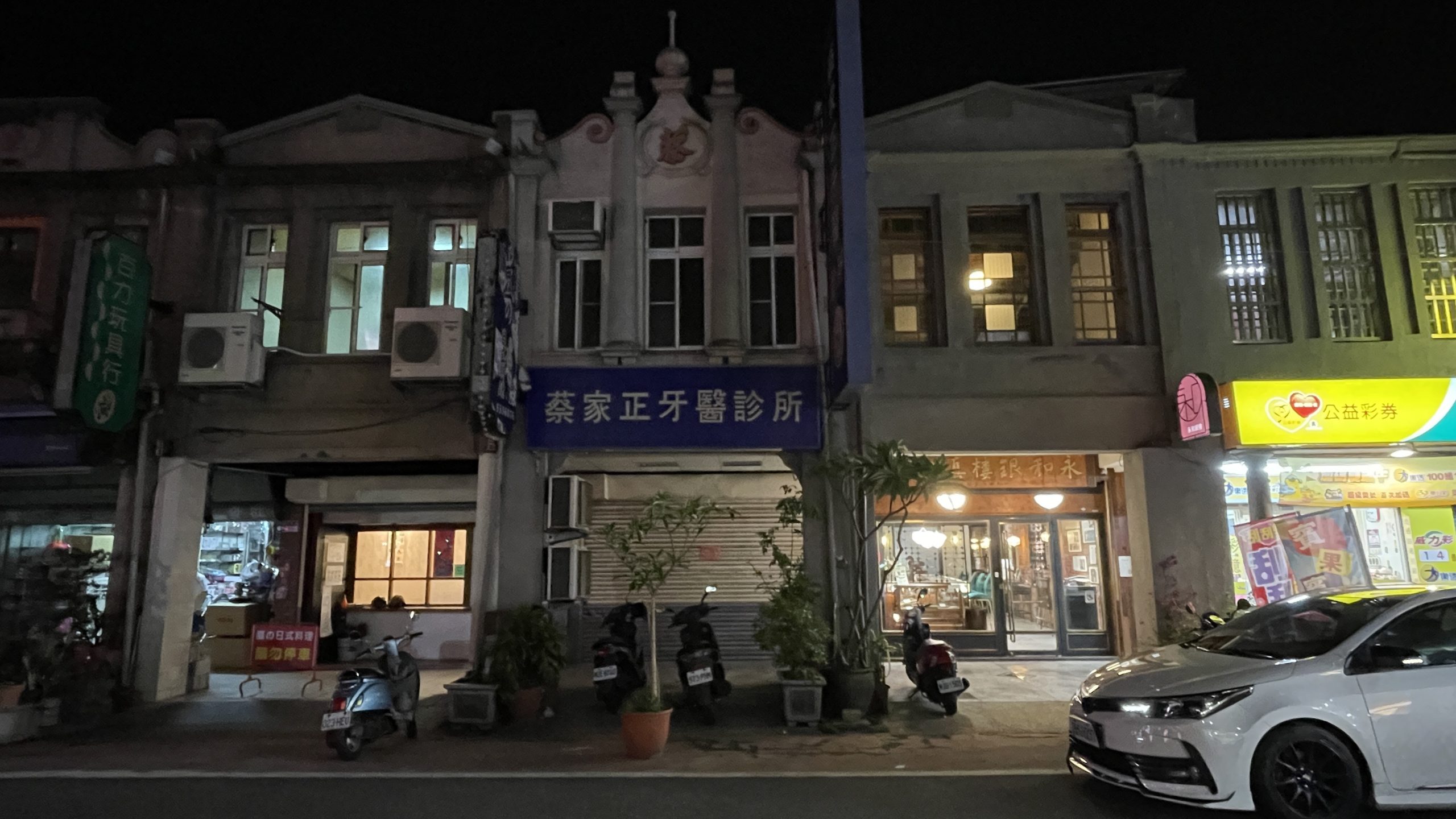 我們走在太平老街的時候,不看手機決定把眼睛往上看,不只看一樓的招牌和燈光,而是從鐵皮、壓克力燈箱中間,試著找出那些還藏著的痕跡。慢慢地,我們發現有些紅磚還在,有些洗石子的柱面還在,有些木窗還開著一點點,甚至連屋頂上的山牆形狀也還能看到半個角落與花的形狀。只是,它們大多被擋住了,就像故事書被貼上了太多新標籤,原來的樣子越來越難記得。我們開始記錄這些被擋住的建築細節:哪一棟二樓還能看到窗戶?哪一面牆還保留紋路?哪個山牆的弧線還沒被全部遮住?不是因為它比較好看,而是因為我們想知道,這條街原來的模樣,已經剩下不多。